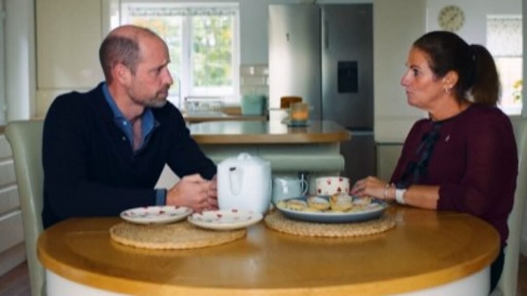 Prince William has fought back tears as he was reunited with a woman who lost her husband to suicide after the death of her young son.